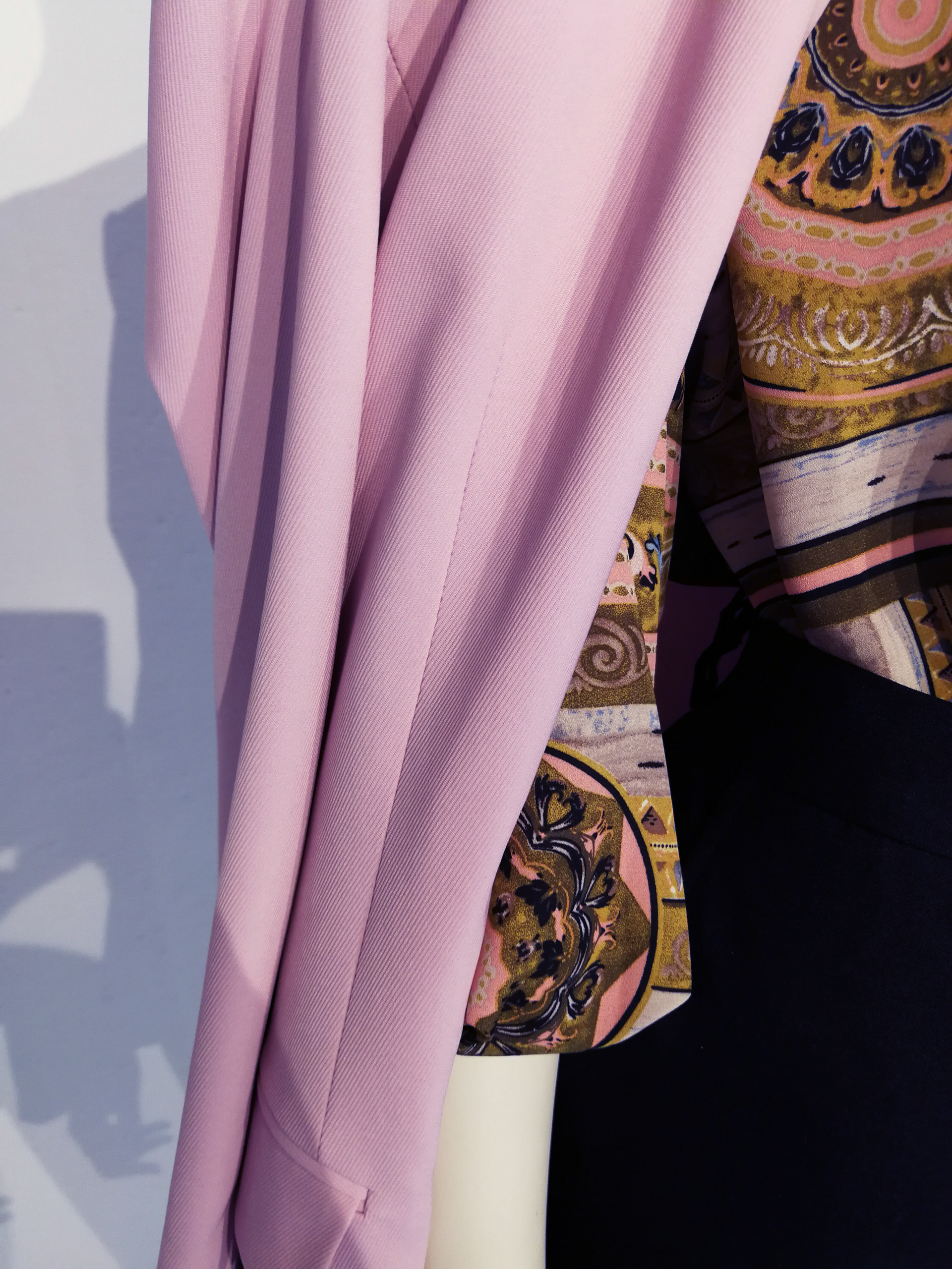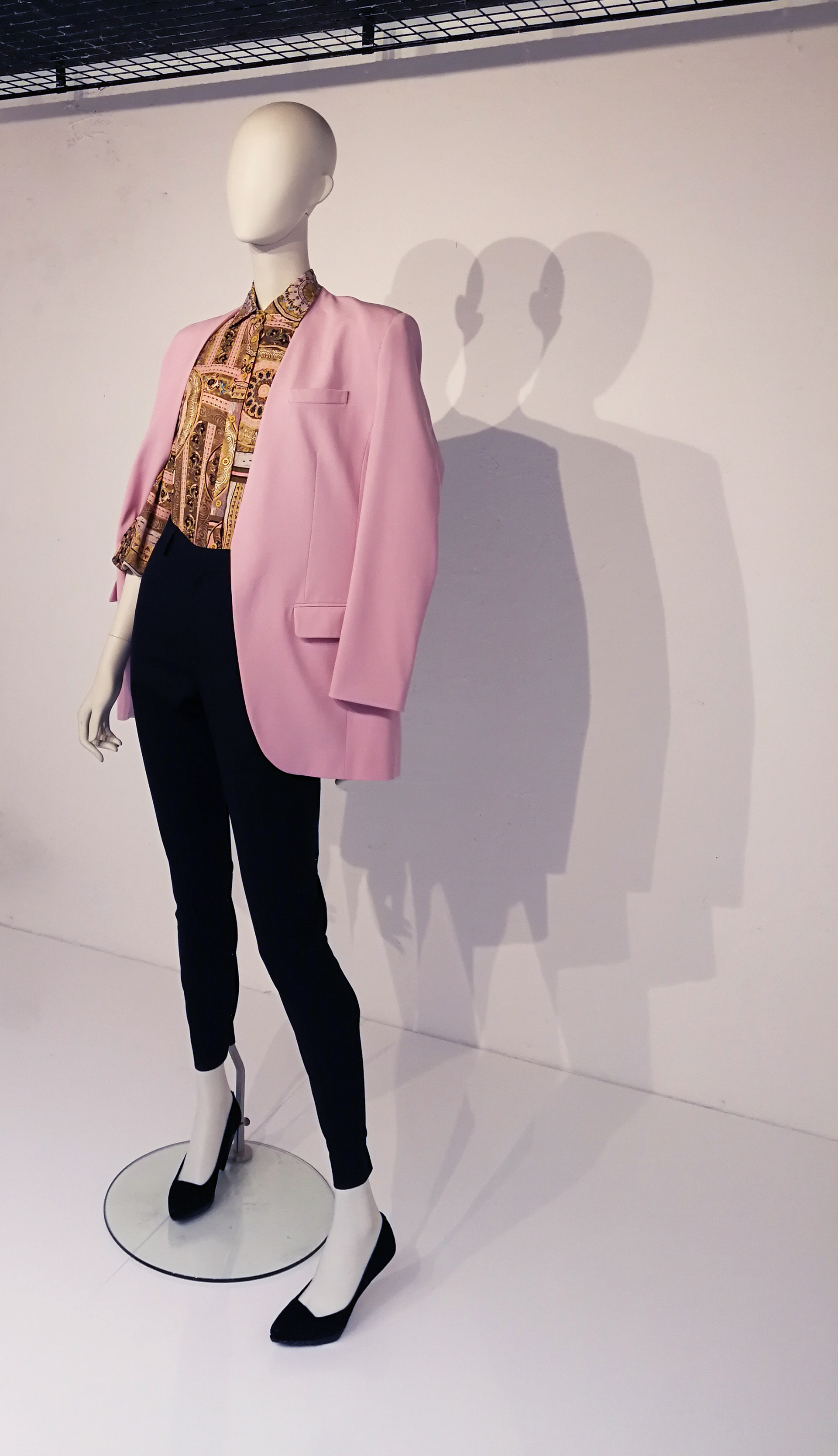 A styling exercise done with items found at the academy, I centred the concept around the printed blouse on the standing mannequin creating a business casual day look and a complementary elegant evening look.